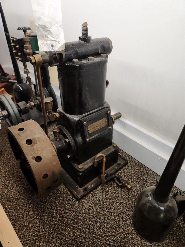 This two-cylinder steam engine was originally used in an early steam-powered automobile produced by the Grout Brothers of Orange, Massachusetts. Founded in the late 19th century, the Grout Brothers Company manufactured both steam and gasoline automobiles during the early years of the automotive industry. Some of their vehicles were even exported internationally and sold in England under the Weston brand.